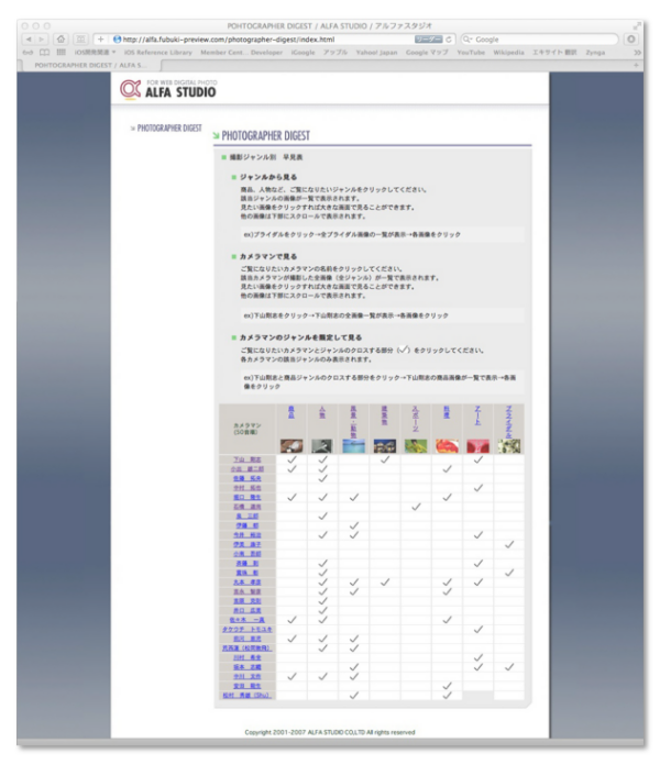 HPリニューアルに伴う全作品の反映が終わっていない為、作品は掲載しておりませんが、下記ページから一部所属カメラマン/ジャンル別の作品集が閲覧可能です。
